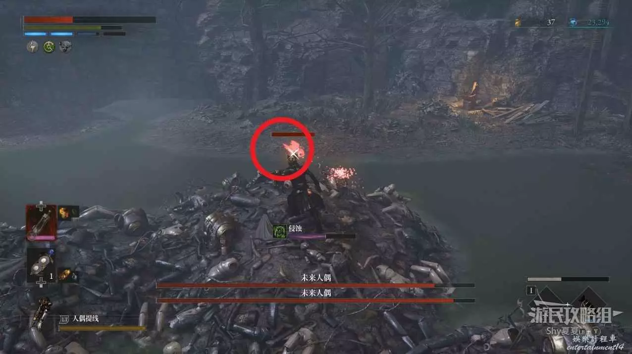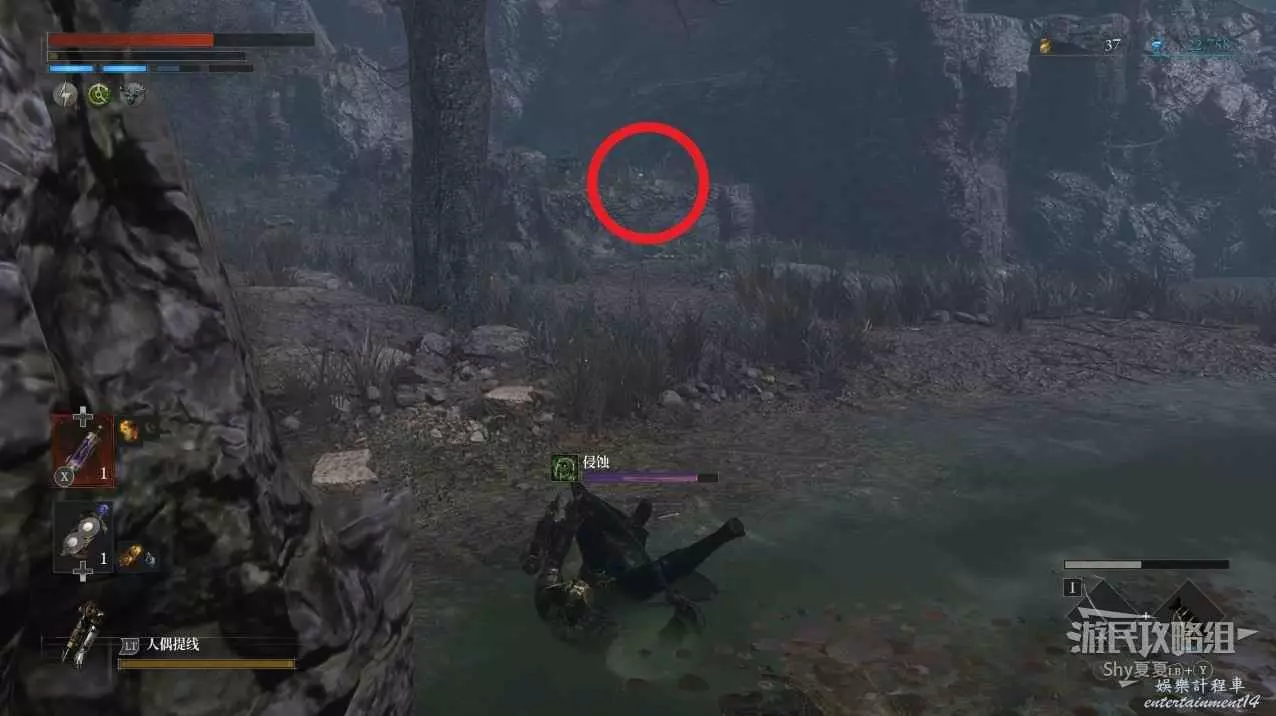 在剛剛進沼澤的路旁邊有一個類似營地的地方,擊敗裡面的人偶可以拾取【屬性淨化安瓶】。