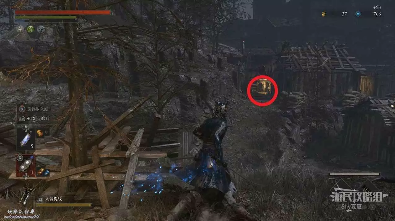 沿著道路往下走,會發現一個還沒放下的捷徑梯子和一個捷徑門,都暫時用不上,接著往下走。