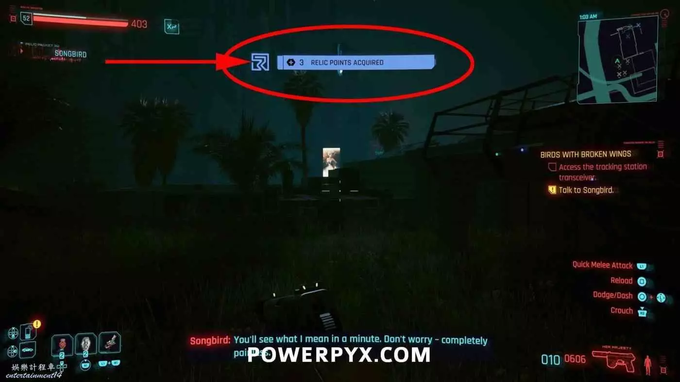 在主線任務【囚鳥】期間,接聽百靈鳥的電話時會自動獲得3個Relic點數,不收對話選項影響,不用擔心漏掉。