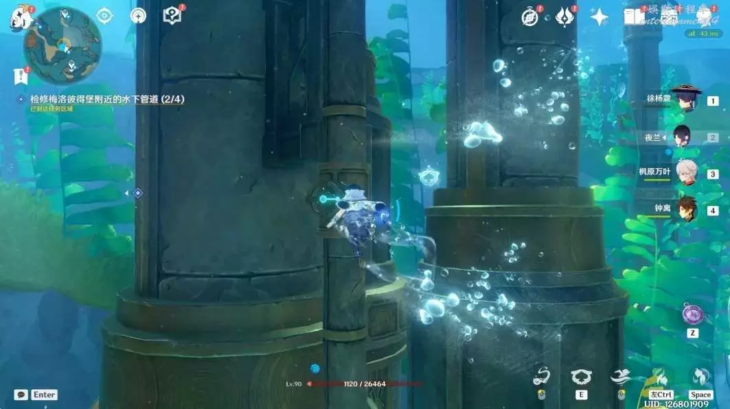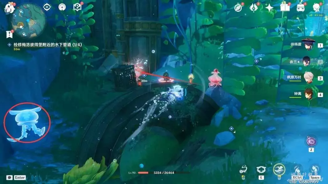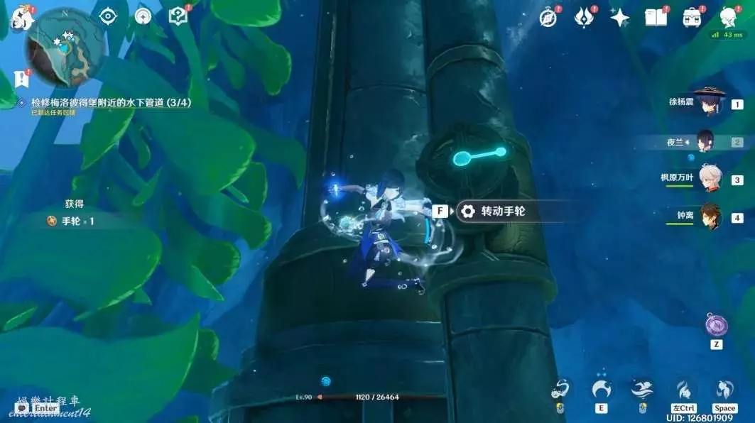 8,第四處,在管道下方吸收獵刀鰩的能力,切割海草後獲取手輪,然後將手輪安裝在管道上,轉動2次即可。