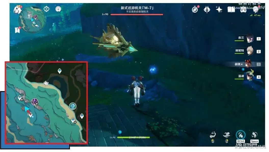 遊到新式巡遊機關「M-7」面前攻擊一下,即可亮血條。(它不會主動攻擊你)