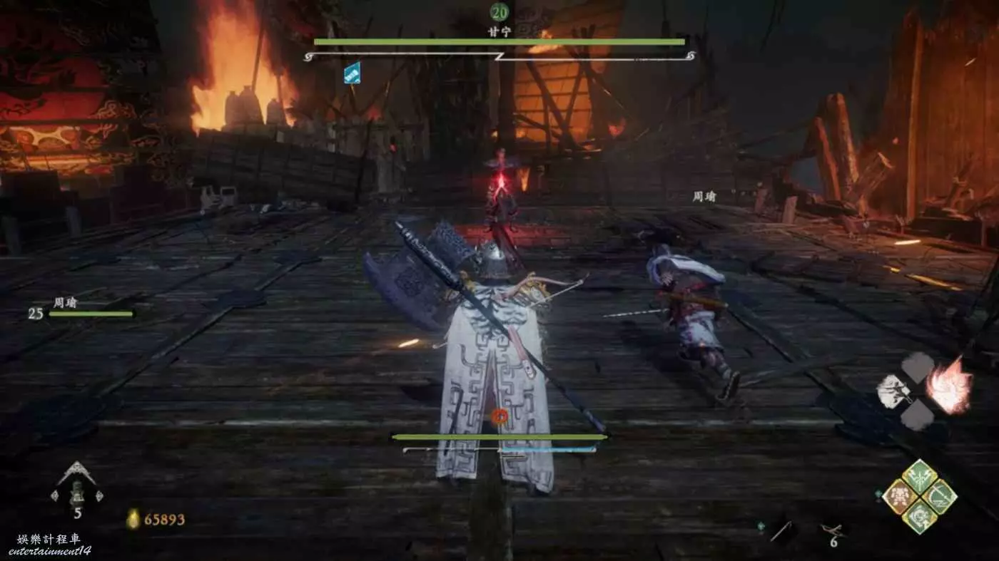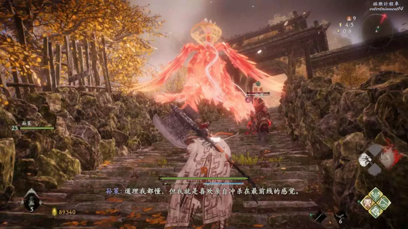 所乙太史慈≈許褚(除了妖化最後還救回來了,孫堅:你們要不要考慮一下救下我?),不過《稱霸江東》在BOSS戰比起來DLC1還是更有誠意,第一幕我們打甘寧,第二幕和第三幕對戰太史慈(第三幕會有P2),甘甯與太史慈分別是雙短兵和大長劍的武器風格,然後共同點是都會使用遠端火力——尤其是太史慈跳起來射箭帶來很多環視感:是你,弦一郎!