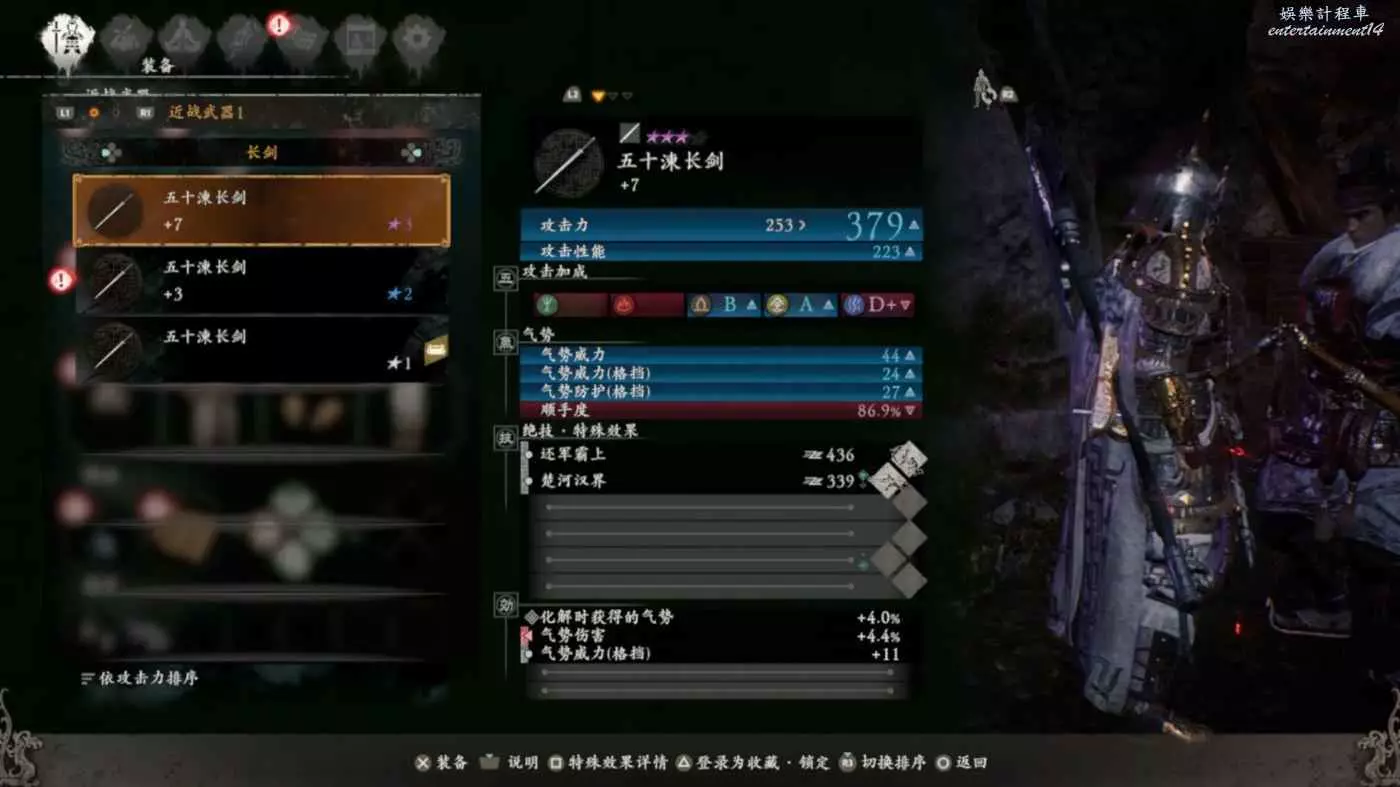 在《稱霸江東》中,還是有兩點比較必確的改動,第一是降低了基本所有施法的前搖(我不確定是不是此前還有改動降低了消耗氣勢)——現在戰鬥中的迂回&補BUFF操作起來更加便利了。