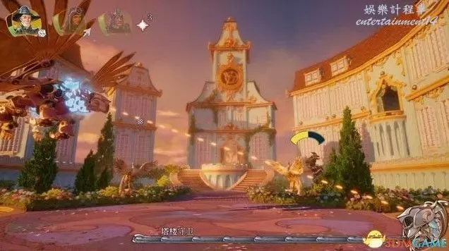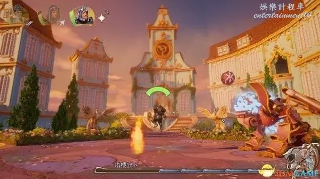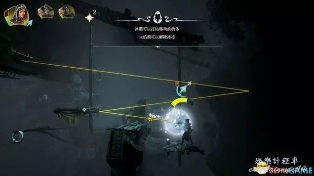 下圖是本關出現的新敵人,用弓箭反彈,射擊背後的弱點即可。