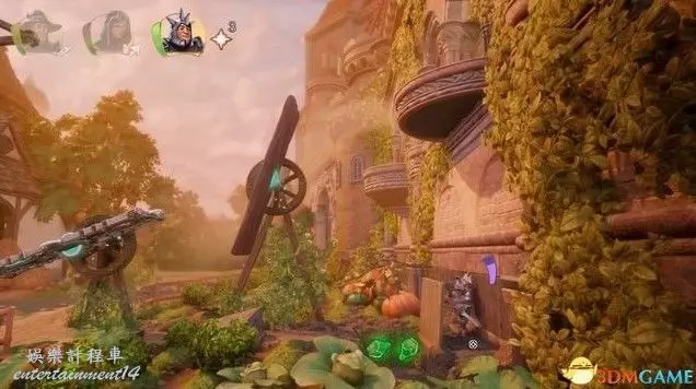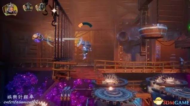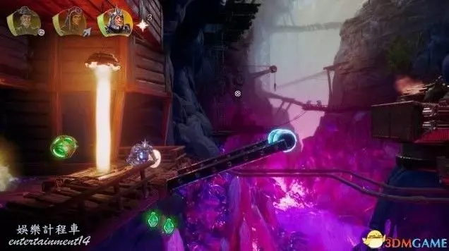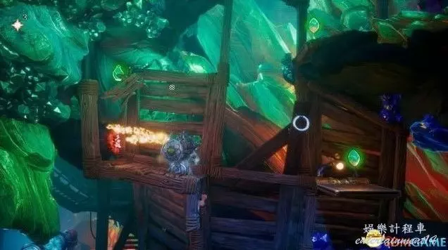 用兩個魔法箱壓著升降器拿到經驗4-5,衝撞魔球打開道路,並打破上方木板拿到經驗6。