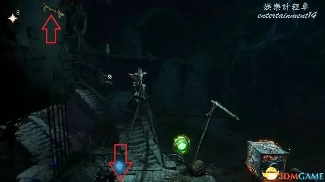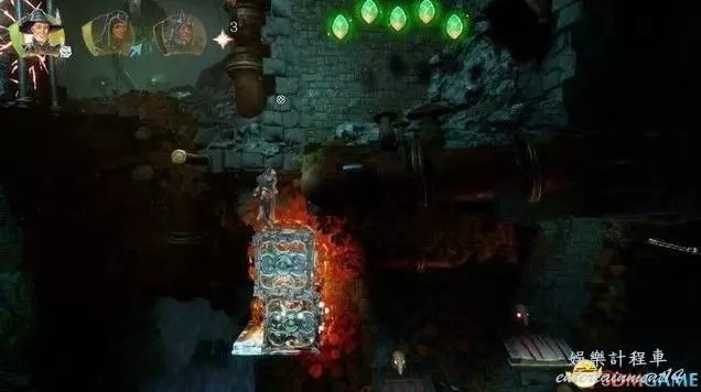 使用重物壓住下方的壓板就能挪開釘刺,往上拿到經驗4-6。