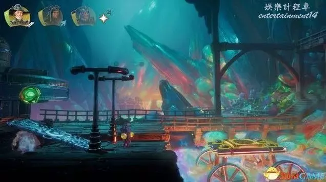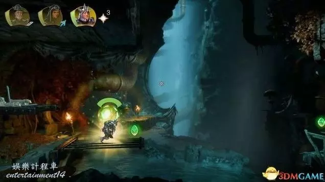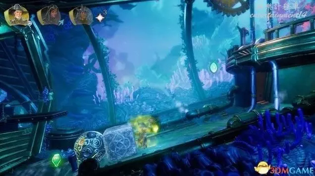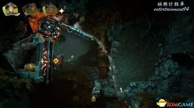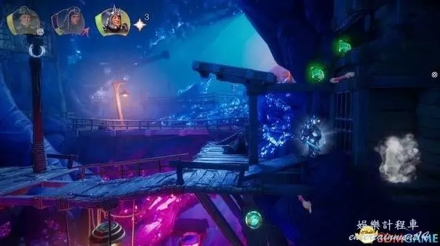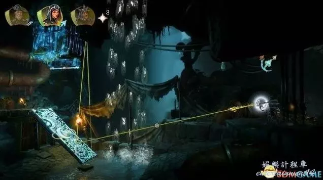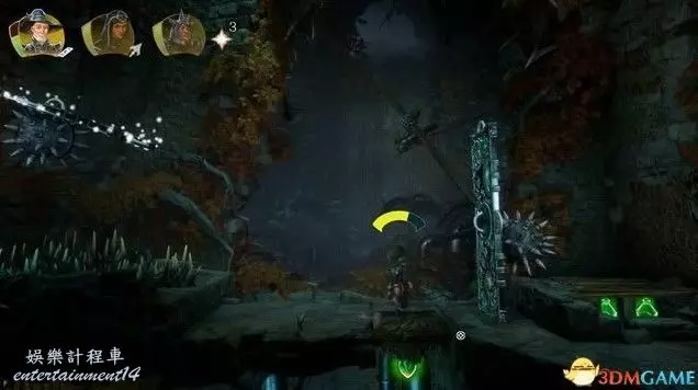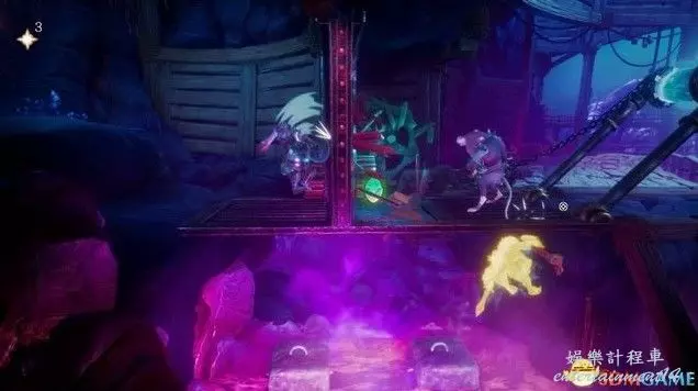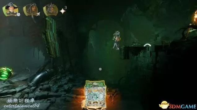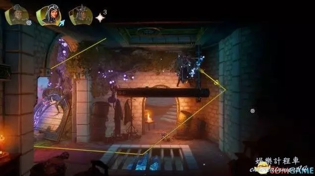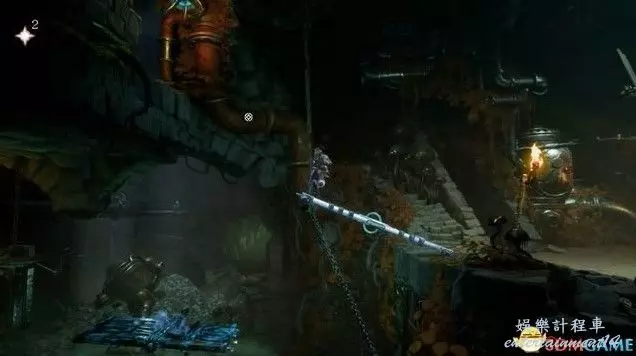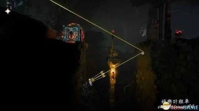 繼續前進,啟動機關後前往下方,讓分身啟動另一個機關。