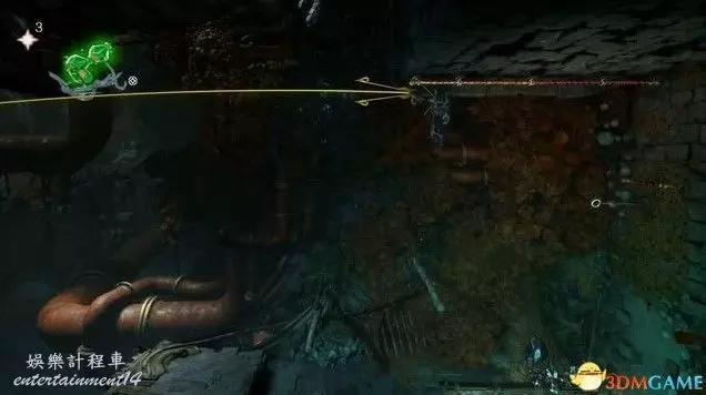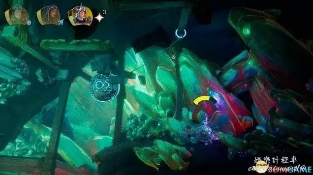 利用磁鐵和繩索拿到左側經驗1-2,能看到右側檢查點上方右經驗3-5。