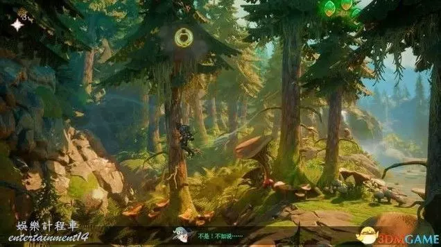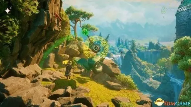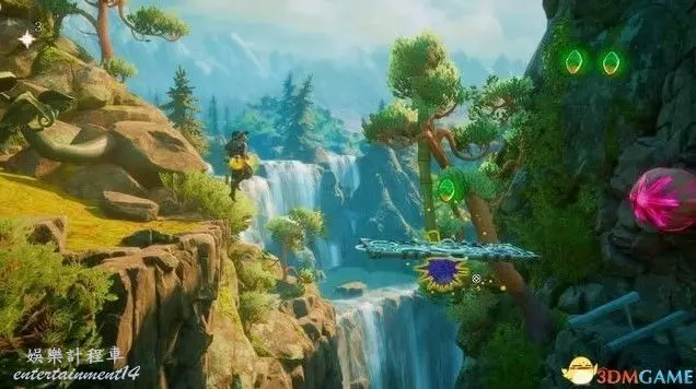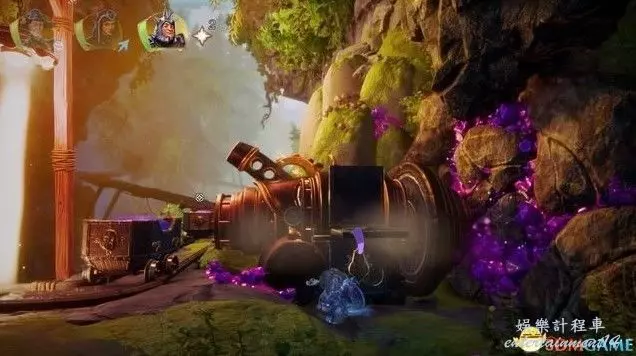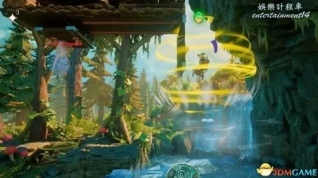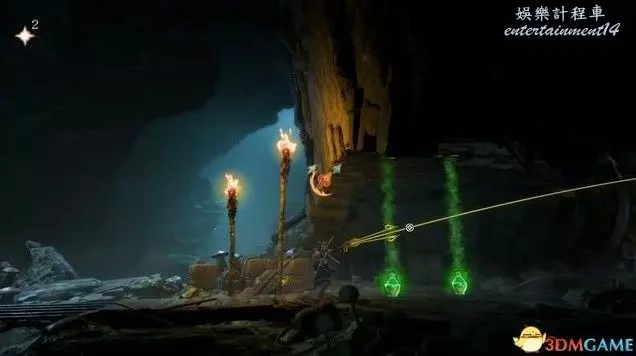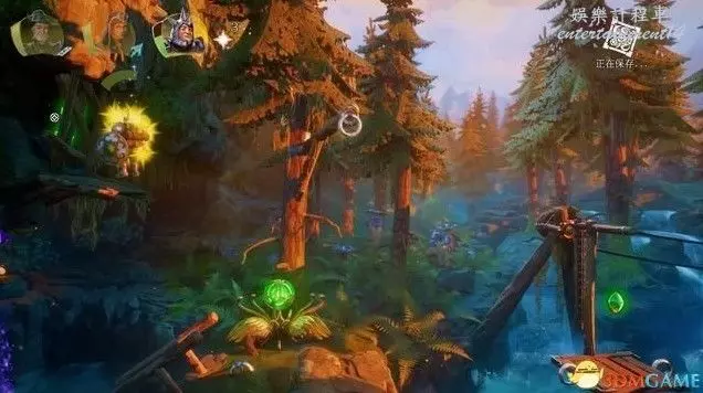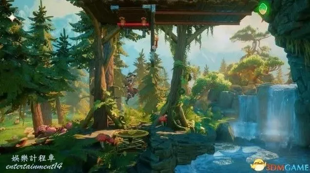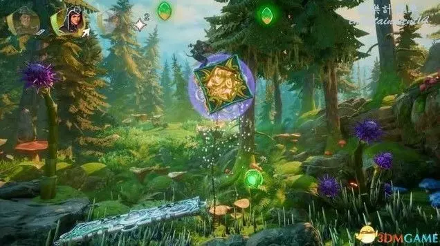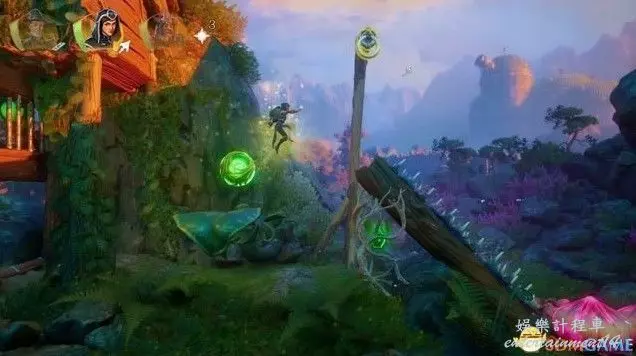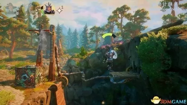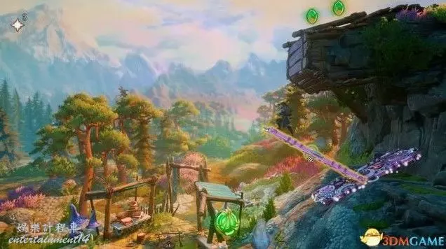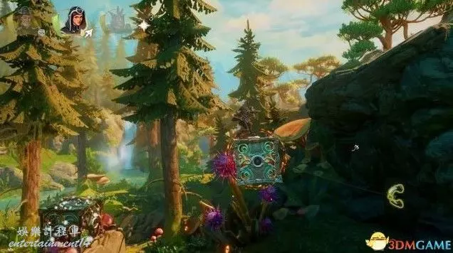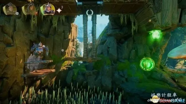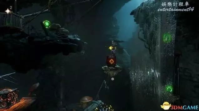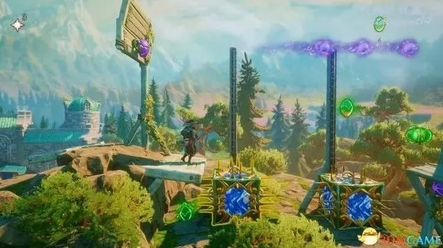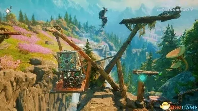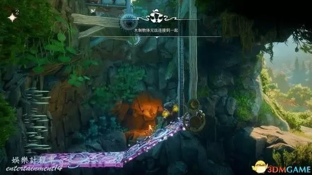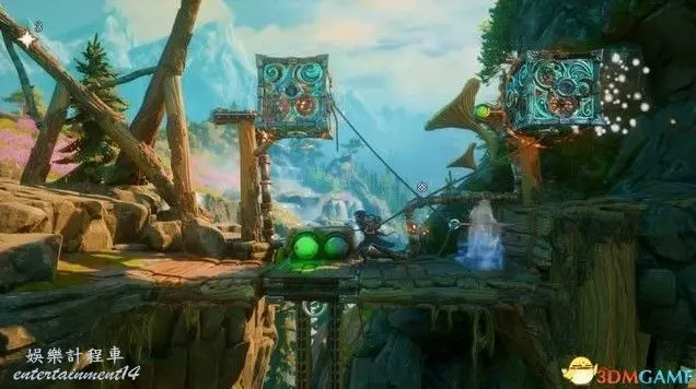 利用魔法箱壓住魔法板,或是射擊上方樹枝啟動開關都能抵達左側。