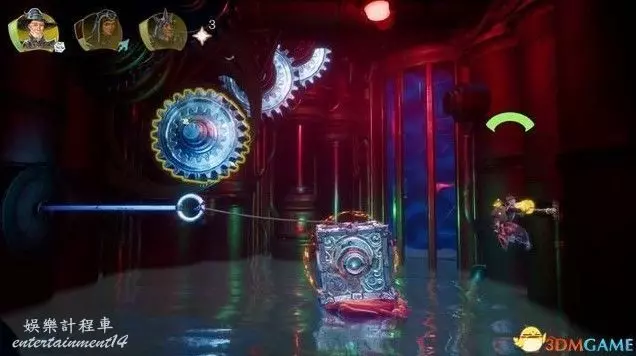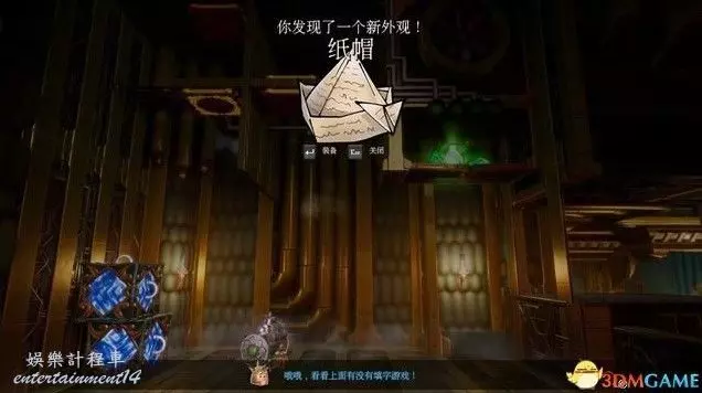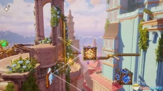 下圖機關需要將箱子擺放如下才能打開,拿到經驗11-17和寶箱裡的外觀“紙帽”。