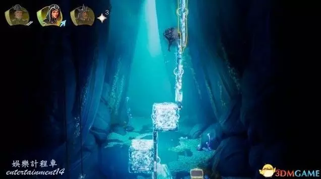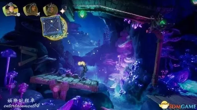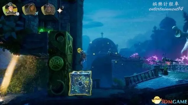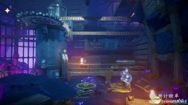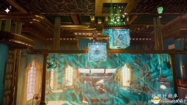 拿到經驗3-4後,用魔法箱壓住右側壓板就能抬升平台。