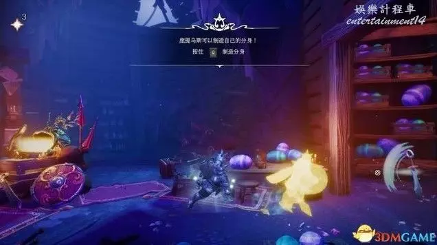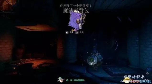 使用分身推開櫃子,在用踩踏震開木板就能往下,拿到外觀寶箱“魔法書背包”。