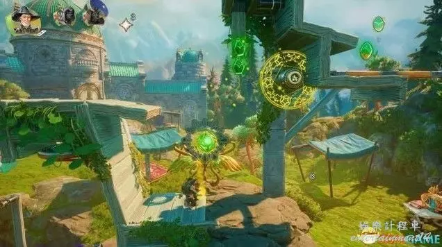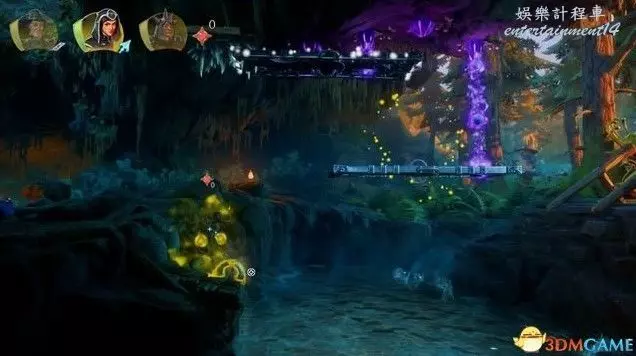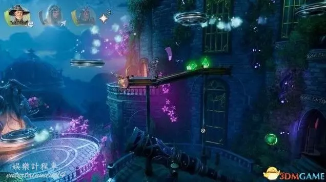 利用檢查點旁的圓環固定魔法板,搭橋前往上方並拿到經驗1。