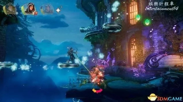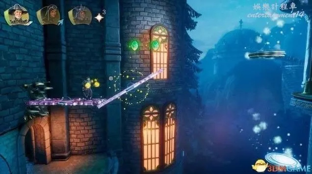 使用重力塊上升時,需要用魔法板擋住左側的飛彈,重力塊被擊中則會調轉重力。