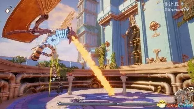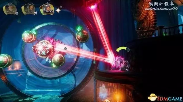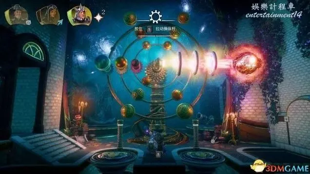 拉杆啟動鐳射,隨後跟著旋轉球上去拿到經驗1-4.