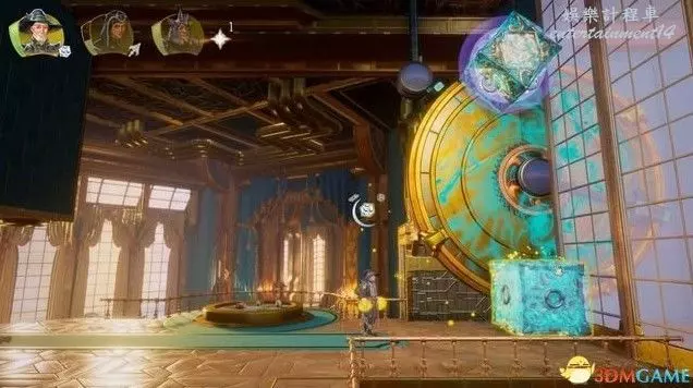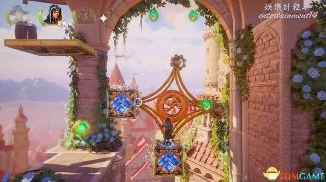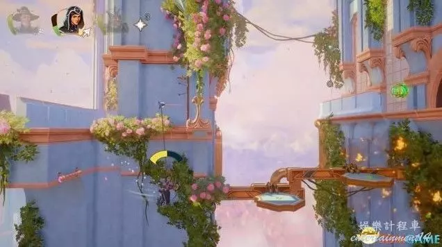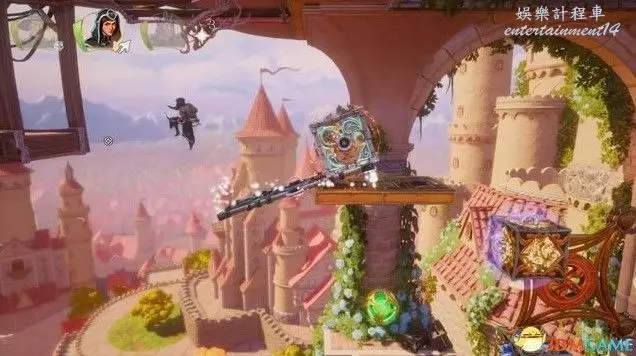 之後利用魔法箱的上升屬性,彈射機關即可開門前進。