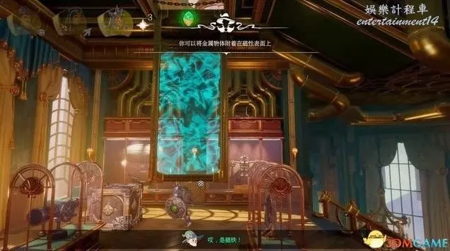 磁鐵上方的機關用魔法箱黏下來就能拿到經驗18-19,繼續前進拿到經驗20。