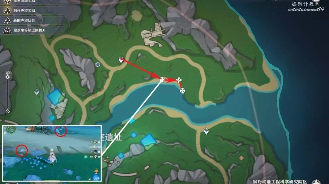 (2)位於楓丹,建議在隊伍中加入林尼,天賦可以標記特產位置