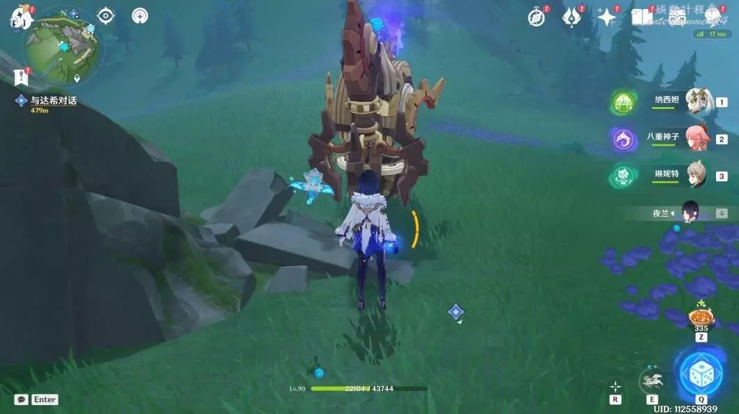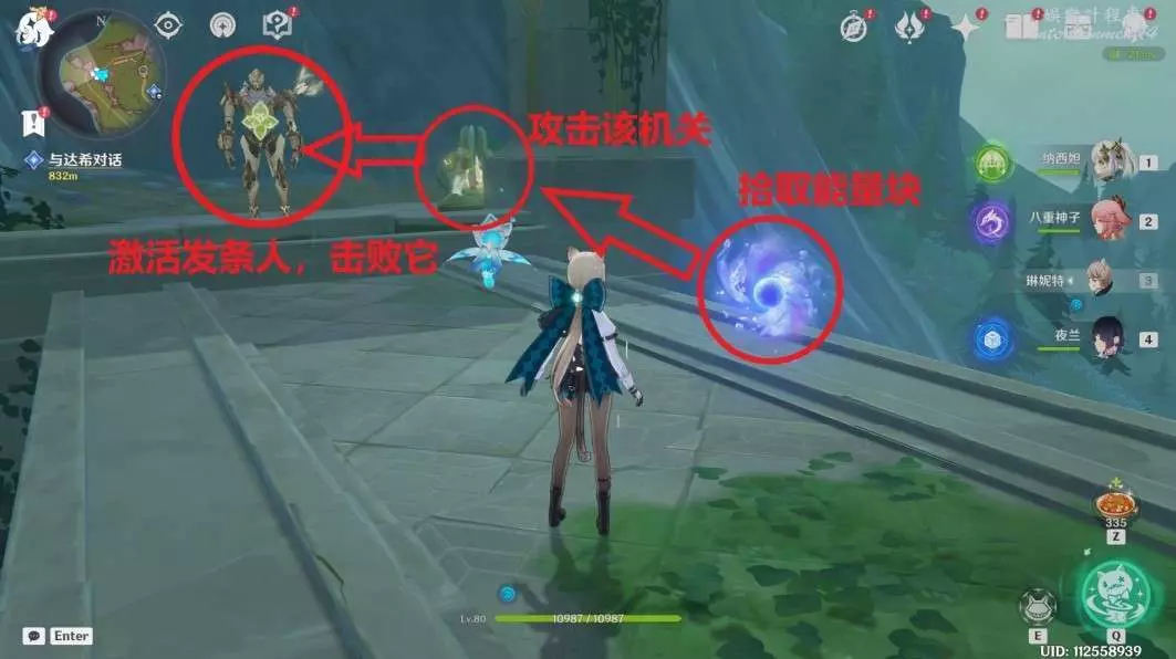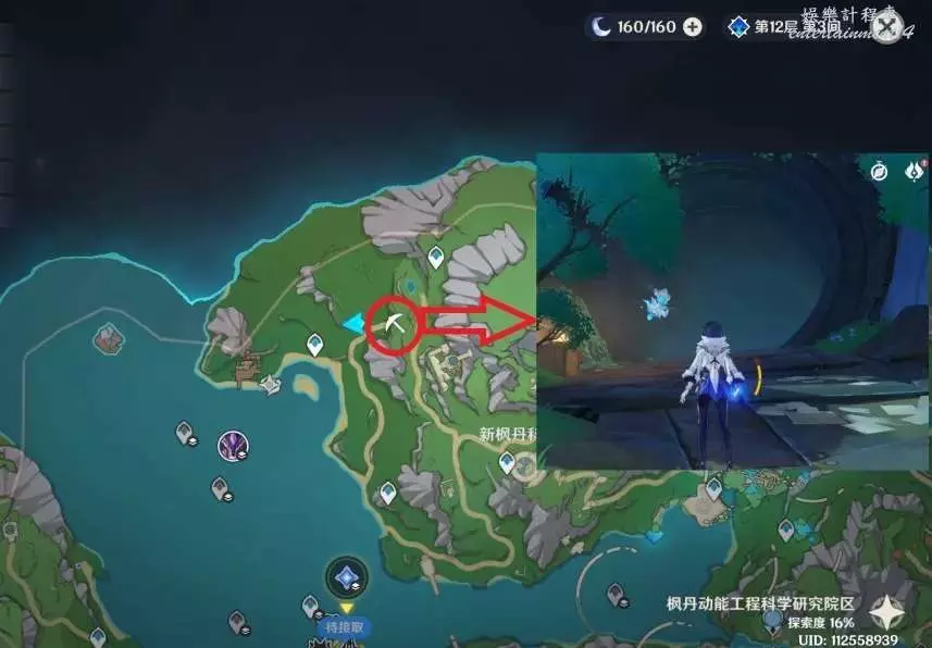 地上,傳送至附近錨點(不要傳送至七天神像),往標點處走,擊敗發條機器即可