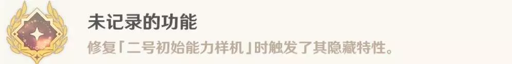 成就概述:修復二號初始能力樣機時,觸發了其隱藏特性