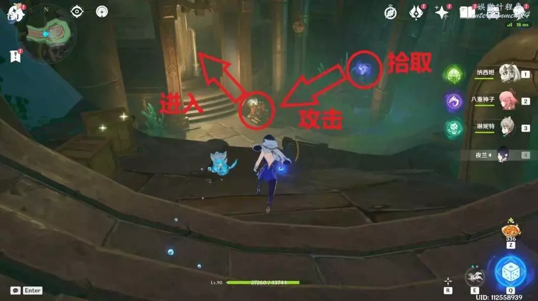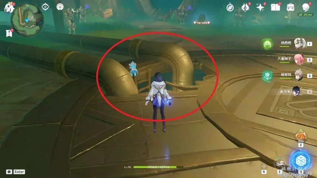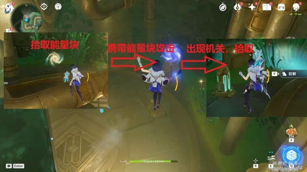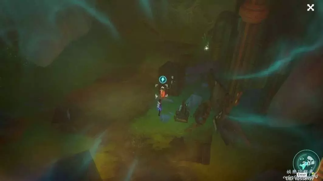下到底部,此處可以找到芒性能量塊,拾取後攻擊能量柱,出現藍色機關,點擊拾取