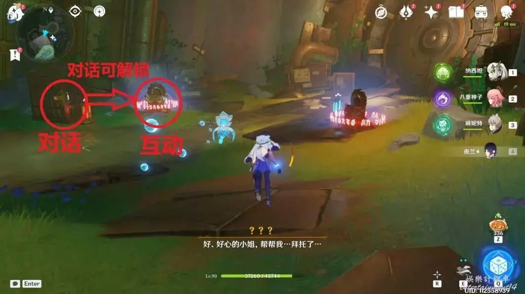 此處需要解救“奎瑟爾”,與籠子裡的奎瑟爾對話,對完話就可解鎖一旁的“遷能終端”機關