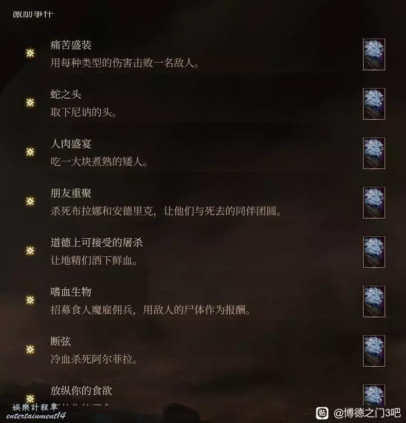 主角邪念帶善人玩法一路走到博多之門各種救人賺賽博功德,但我堅信能夠洗白成為英雄就一直玩了下來並且經過一路的行善積德終於成就耶格神選成為博多之門的英雄所以僅限善線的激勵點不包括無腦殺殺殺的,善線也有邪線沒法拿的點。
