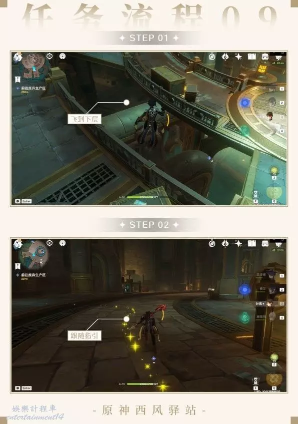 09、追蹤剛才接取的任務,然後直接飛到下一層,即管理區。如果地上的黃色光線消失,就重新追蹤任務,直到出現指引,並跟隨指引前進。