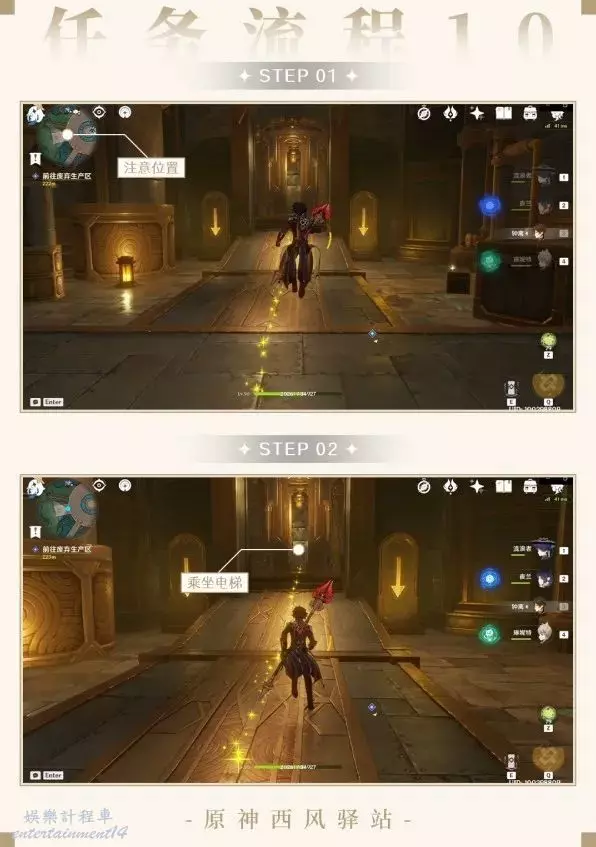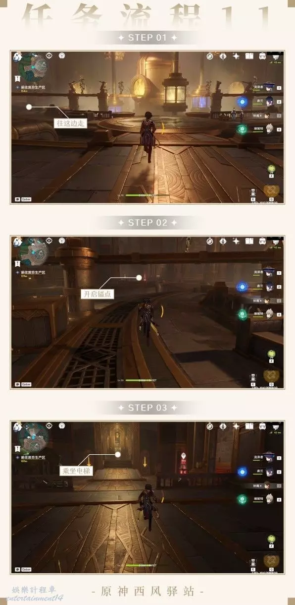 25、打開地圖,傳送至“梅洛彼得堡”字樣上方的錨點處,然後左轉,沿著順時針方向前進,注意看左側,當出現一個像上的箭頭時停下來,前往箭頭位置乘坐電梯,來到生產區·上層。