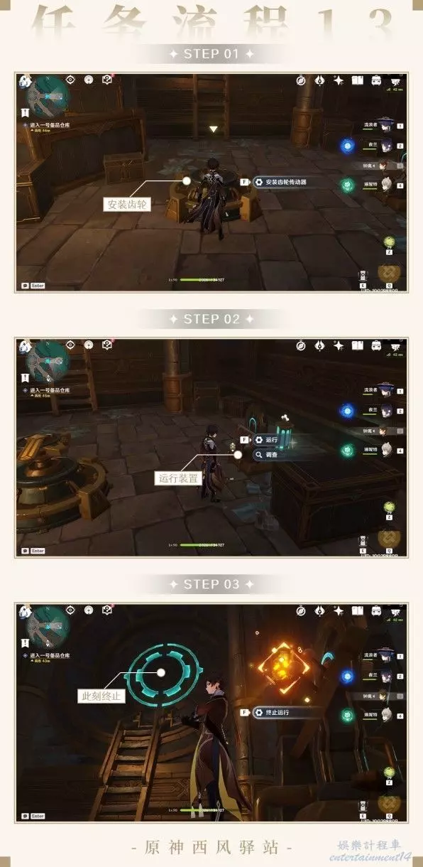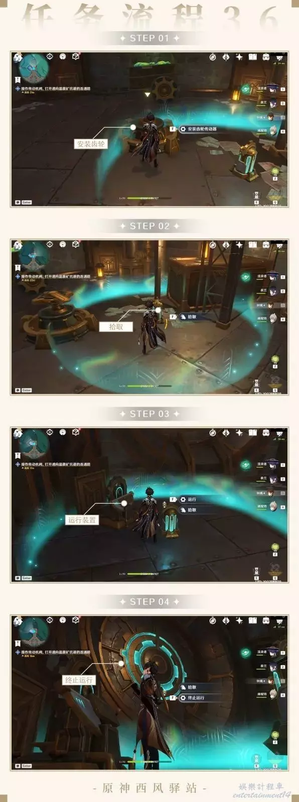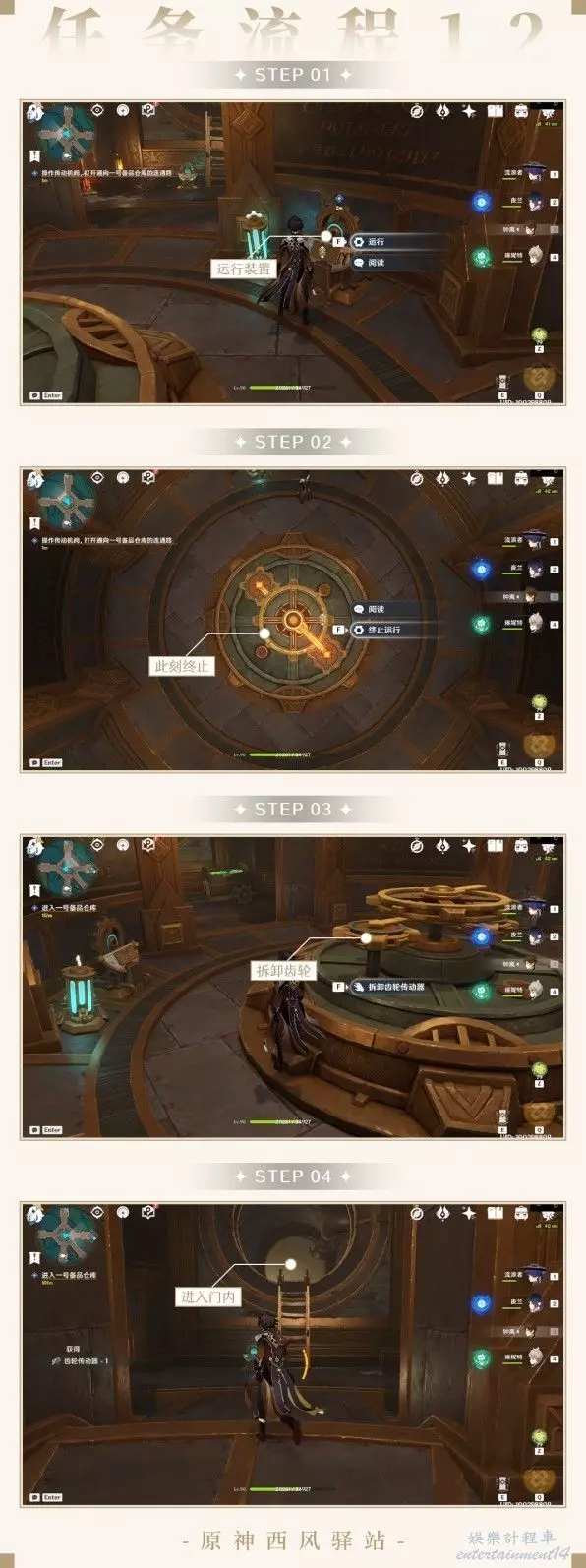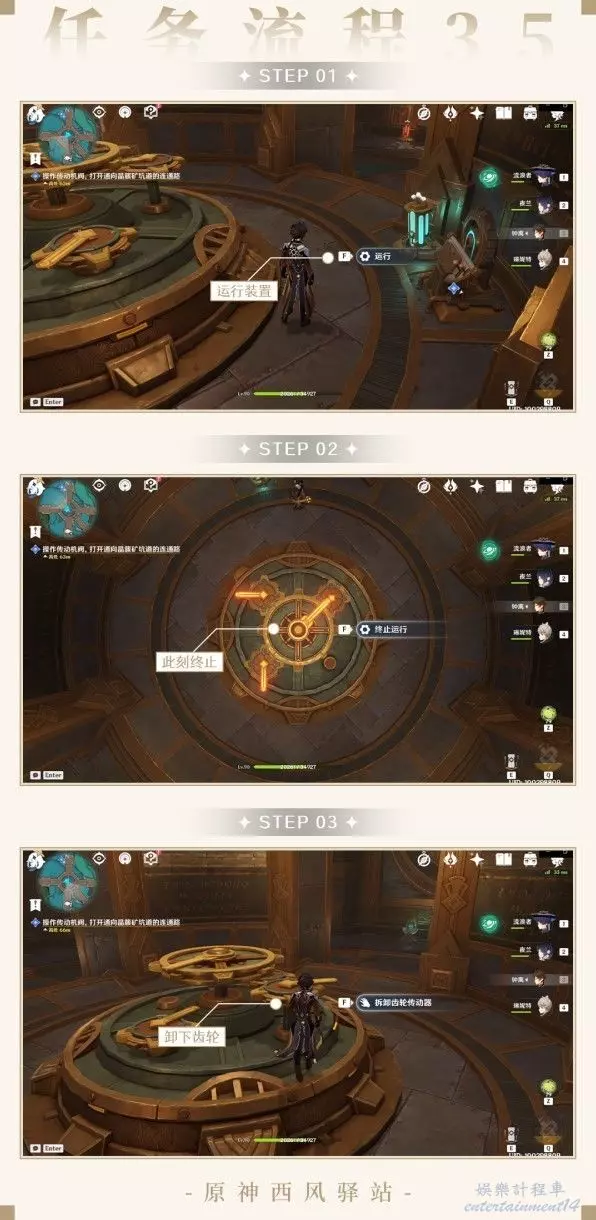 12、來到傳動裝置旁,點擊執行,等齒輪轉動至圖中位置時點擊終止執行,然後靠近齒輪傳動器,點擊拆卸,再進入剛才打開的門(東方向)。