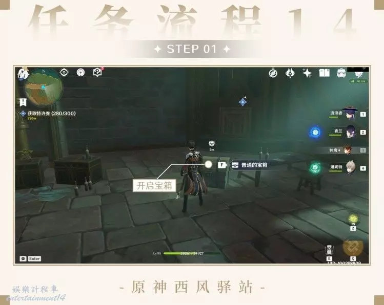 14、進入門內,對話結束後任務完成,獲得特許券*280,開啟旁邊的普通寶箱,獲得特許券*30。