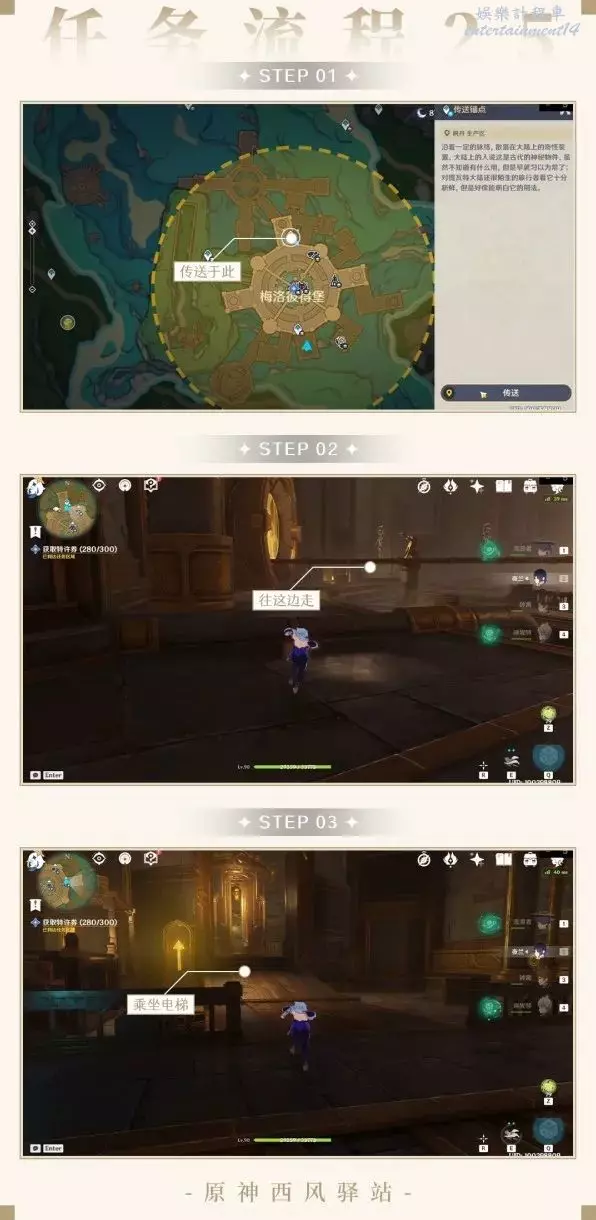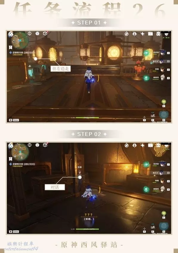 26、從電梯出來後,往前走一段距離,再左轉,沿著順時針方向前進。當出現“哢嚓”字樣後停下來,找到NPC奈莉,接取到任務「梅洛彼得生活場景·課題未完成」,按照任務提示完成即可,獲得特許券*280。