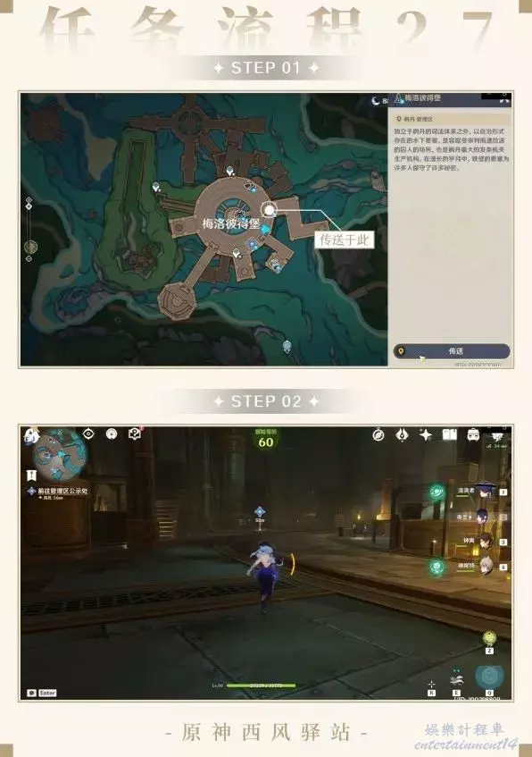 任務簡介:解鎖梅洛彼得堡的地圖,了解梅洛彼得堡內的生活場景,在神秘人士的帶領下逃離梅洛彼得堡並了解到有關水仙十字結社過去的故事。