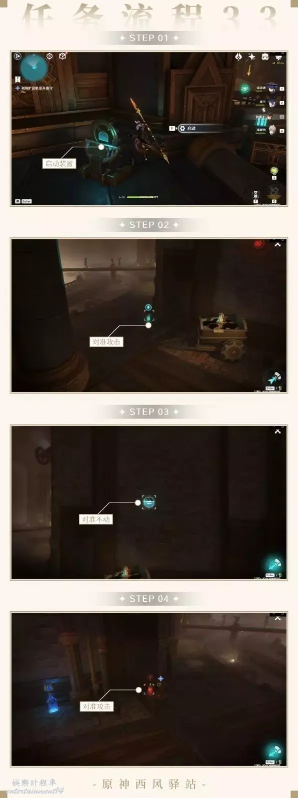 33、啟動旁邊的裝置,將視角中心對準剛才啟動的儲能裝置,點按攻擊鍵,然後將視角對準對面牆上的藍色鏡頭,不要移動,等待視角轉換完成。最後將視角對準傳送點右邊的裝置,點按攻擊鍵,再退出操作介面。