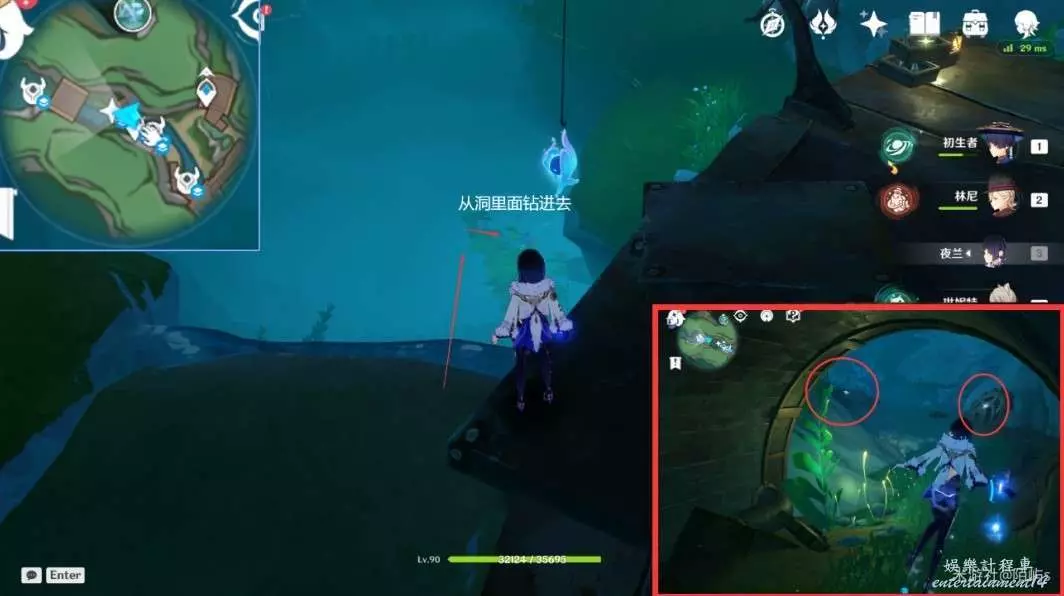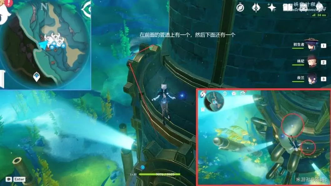 ➣ 出管道,朝著小地圖的上方看,在前面還有一個大管道,鑽進去跳入水中就有一個幽光星星。