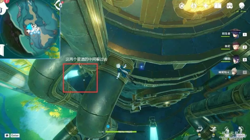➣ 視角轉到小地圖的右下角,從兩個管道中間看過去,就能看見一個幽光星星。