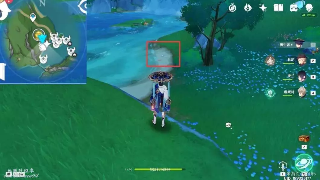 ➣ 朝著小地圖的下方繼續走,在前面的淺灘背面有一個幽光星星。