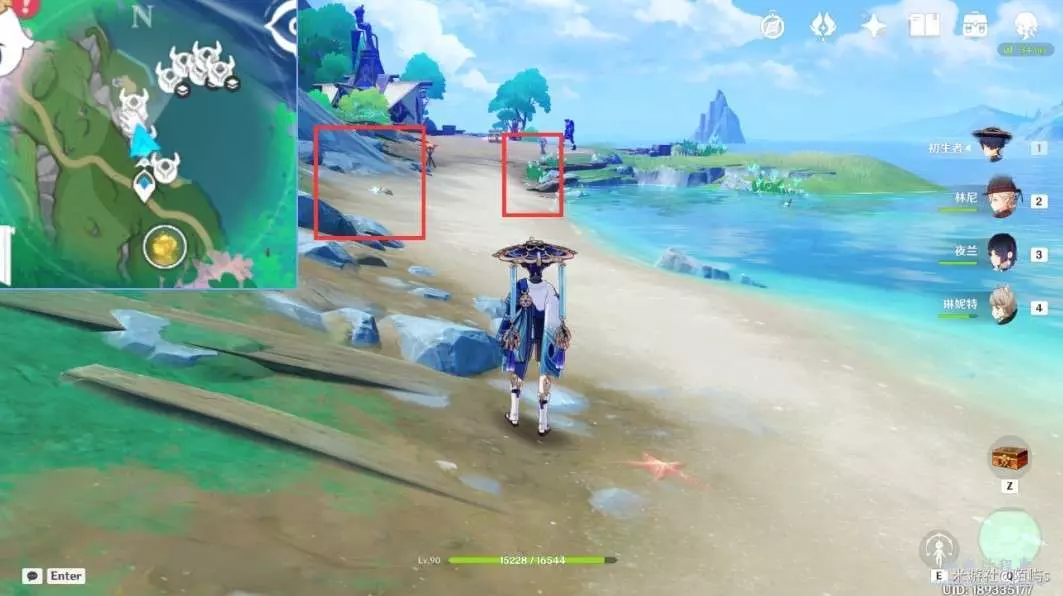 ➣ 朝著小地圖的上方走,在前面海灘還有兩個幽光星星。