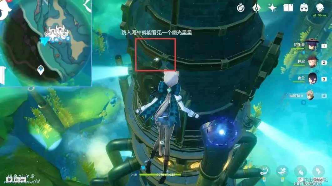 ➣ 朝著小地圖的右邊走,直接跳進海裡就能看見一個幽光星星。