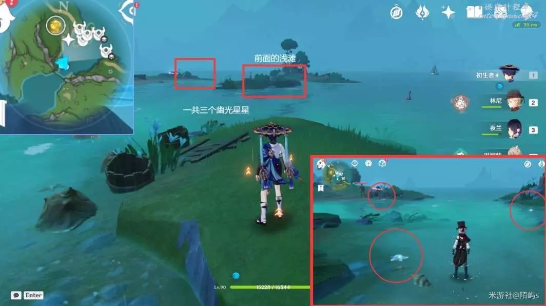 ➣ 朝著小地圖的右上角走,在對面的淺灘處有三個幽光星星。
