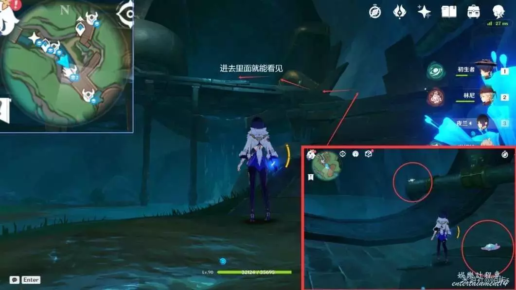 ➣ 朝著小地圖的右下角位置從木梯上去,進入大管道裡面就能看見兩個幽光星星。