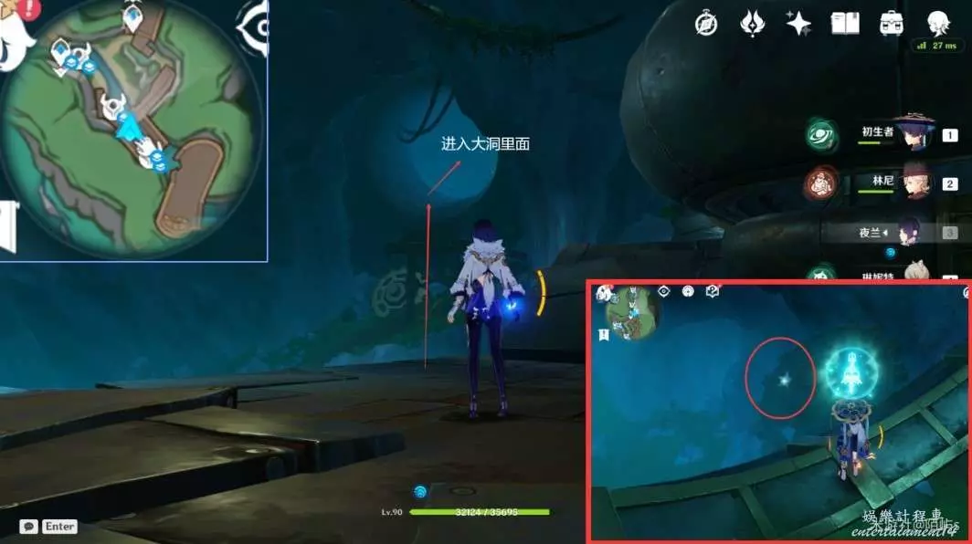 ➣ 回來原來的傳送點,朝著小地圖的右邊看,在面前有一個幽光星星。
