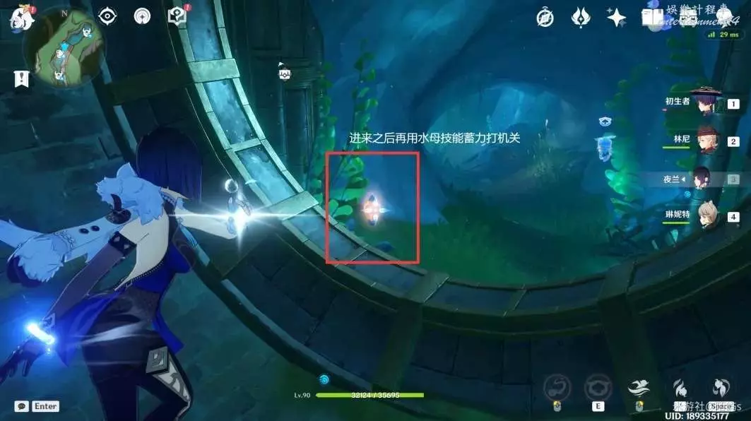 ➣ 進入裡面之後,用水母技能蓄力打一下外面的機關(蓄力然後再按一下就可以爆炸),前面的大門就打開了。