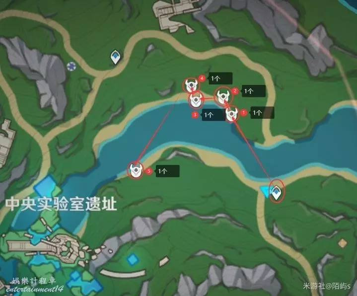 ➣ 來到中央實驗室遺址右側傳送點,朝著小地圖的左上角走,走過海灘就能看見兩個幽光星星。