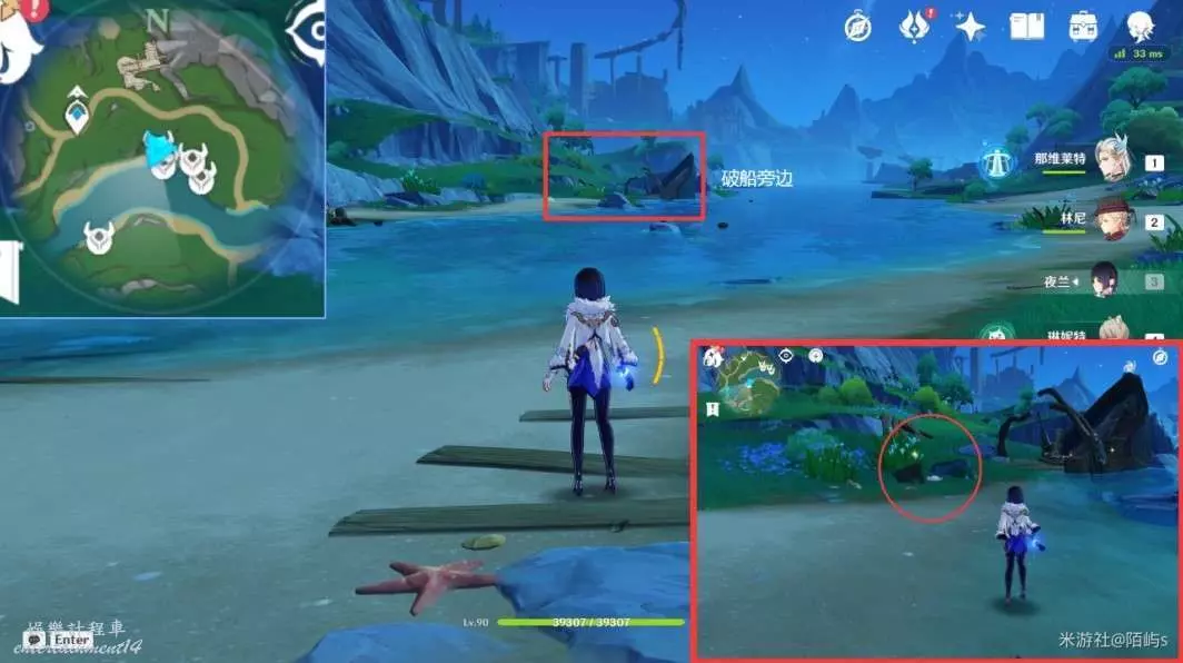 ➣ 朝著小地圖的左下角看,在對面的破船旁邊有一個幽光星星。