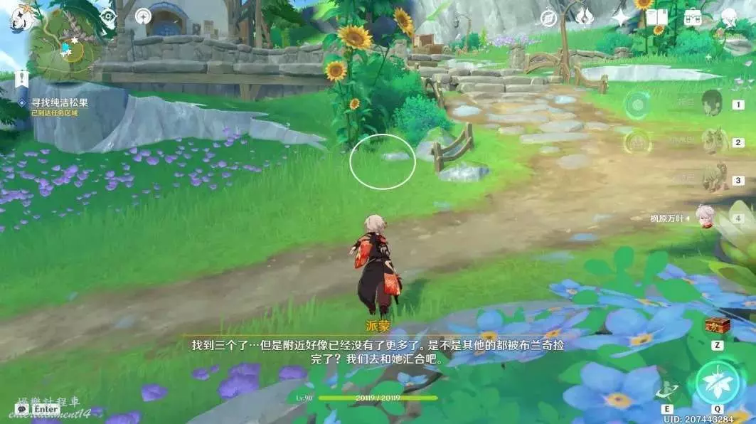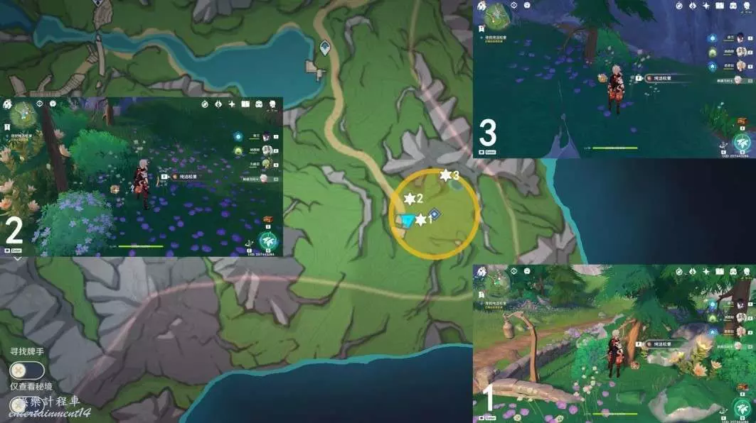 前往圖中指引3處位置,拾取3個純潔松果