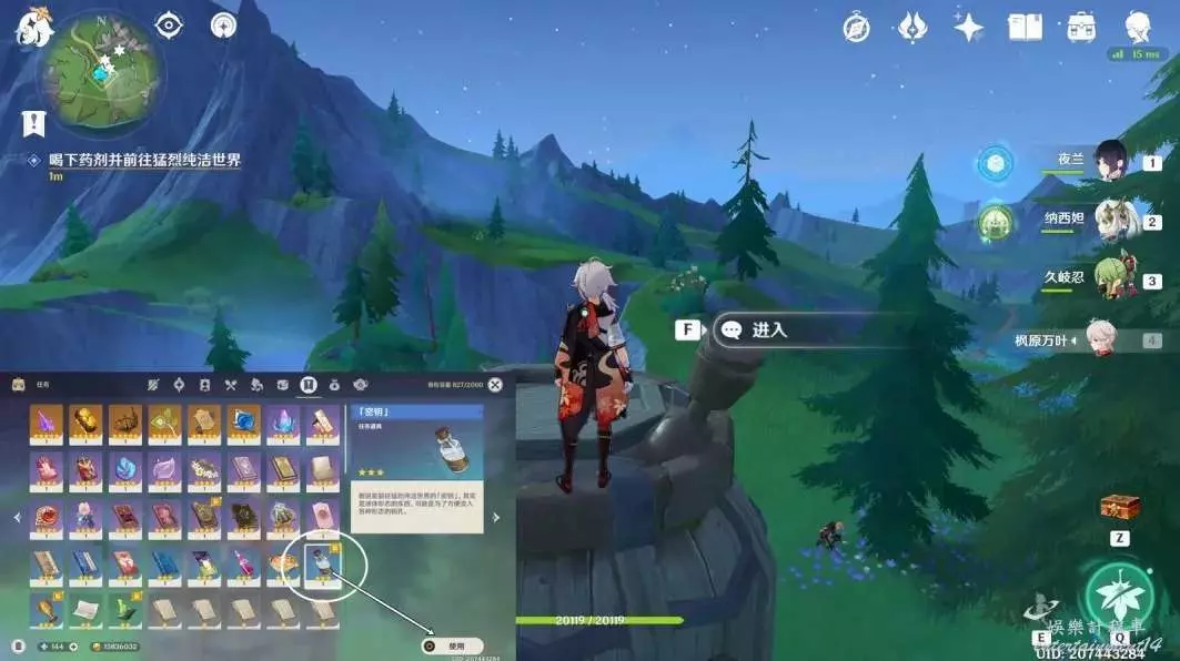 找到「金鑰」並使用,退出後互動“進入”;