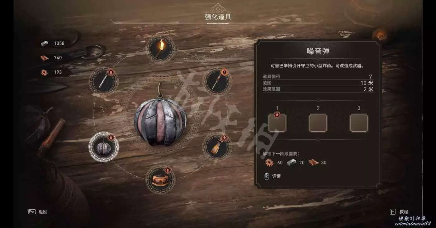 道具介紹:可替巴辛姆引開守衛的小型炸藥。可改造成武器。