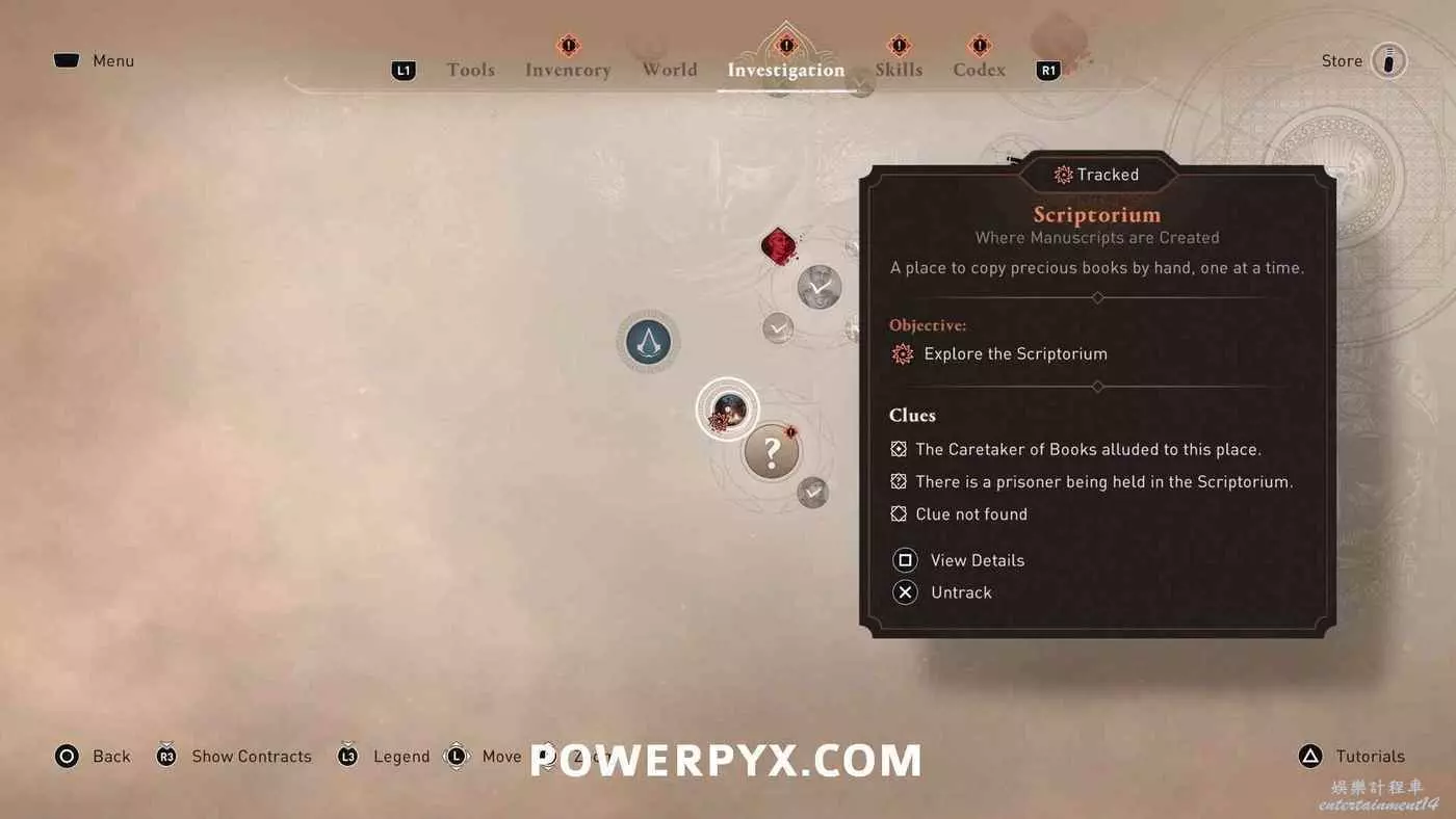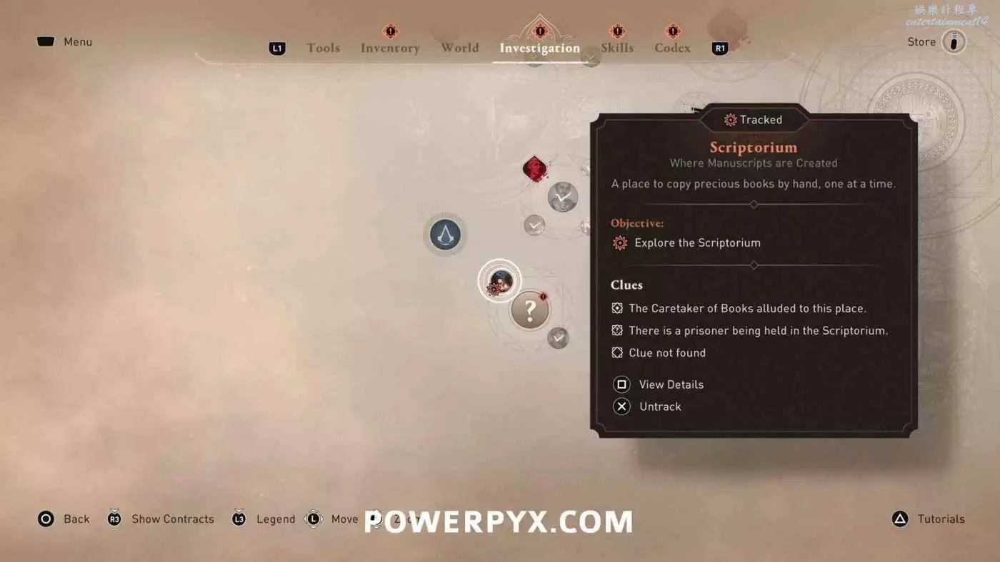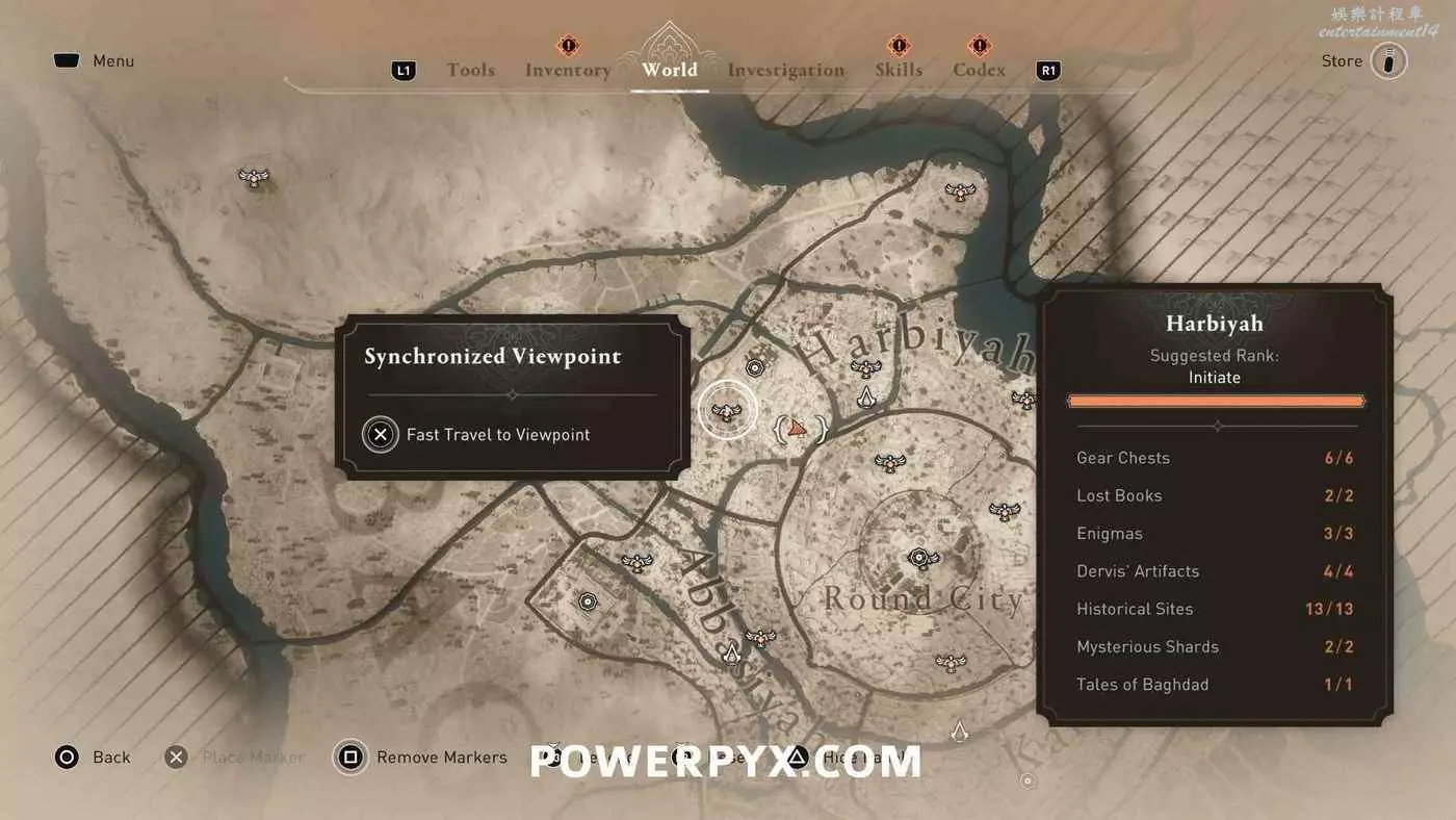 【省時技巧】優先同步所有鳥瞰點(俯瞰點)。鳥瞰點可以消除地圖上的迷霧、顯示收集品、快速傳送。今早解鎖可以在任務期間節省大量時間。
