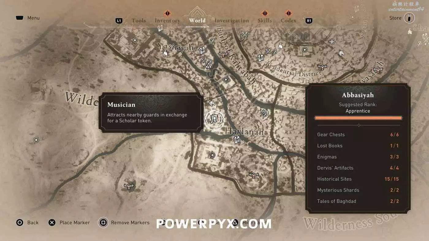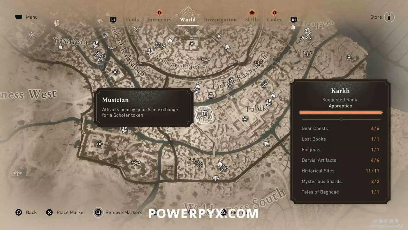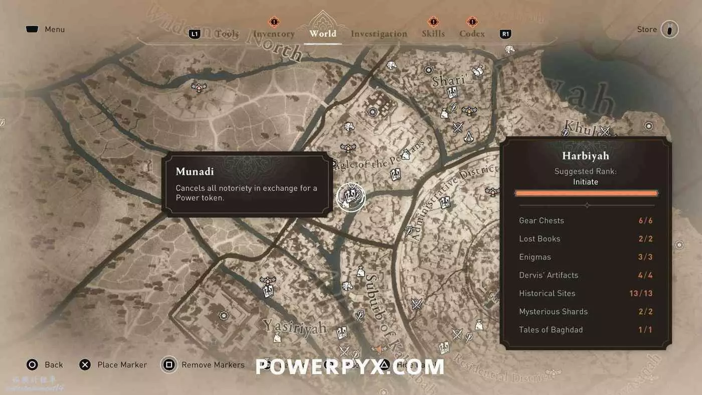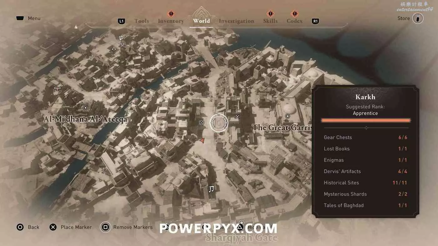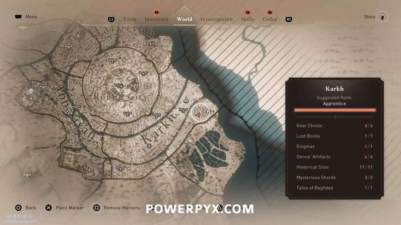 此獎盃需要拿到所有區域(哈比耶區、阿拔斯區、卡爾克、圓城、荒野)顯示在地圖右下角收集進度統計中的所有收集品,獲得100%完成度。包括:裝備箱、遺失書籍、謎團、歷史古跡、神秘碎片、巴格達的傳說。所有收集品位置請參考本文開頭的相關攻略。